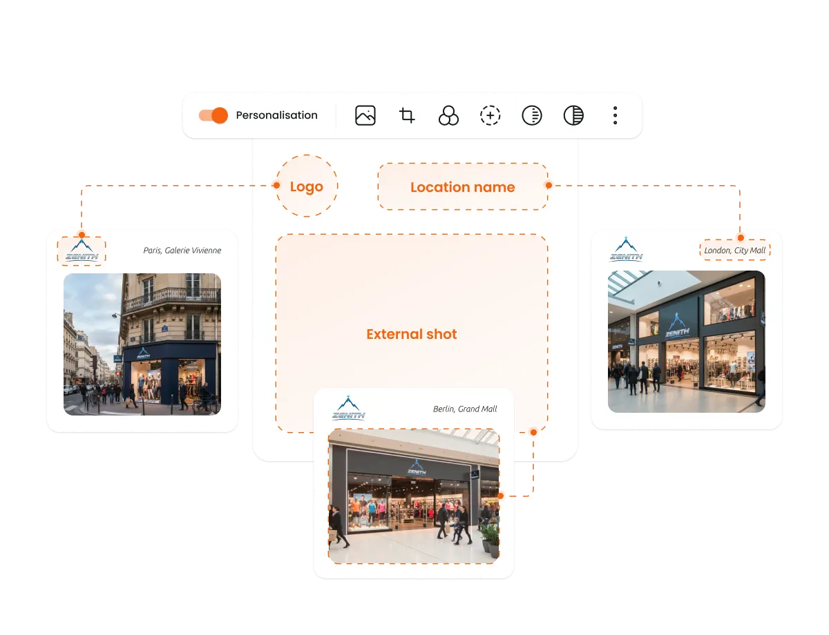 Create reusable, on-brand templates for campaign text and images - all dynamically personalised per location.