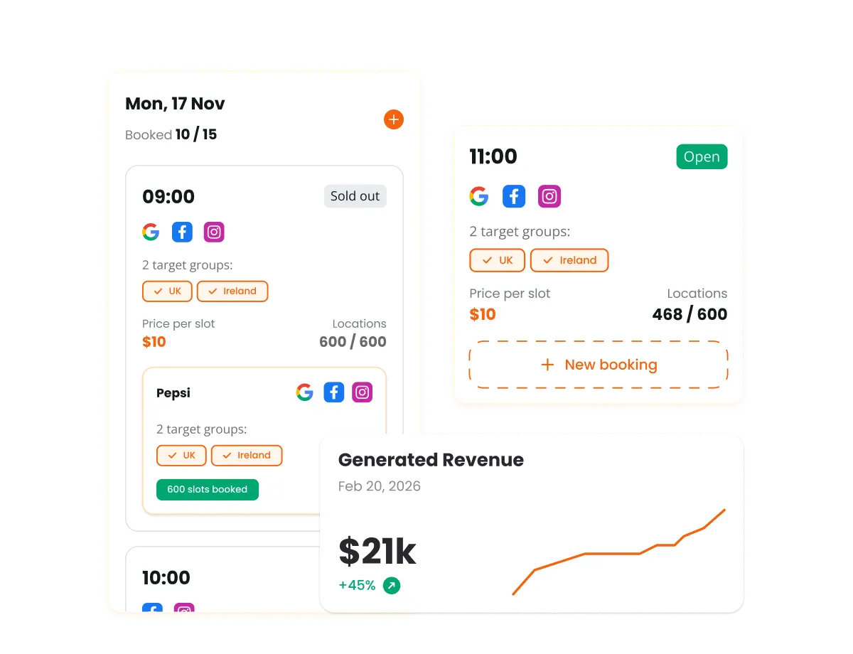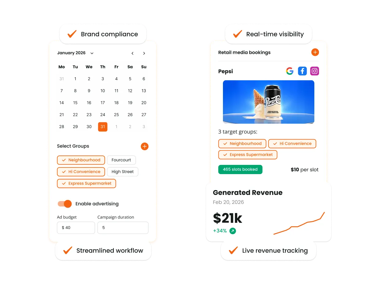 You can sell campaign slots on store pages, deliver localised creative at scale, and provide measurable performance reporting - turning local digital presence into a new source of revenue.